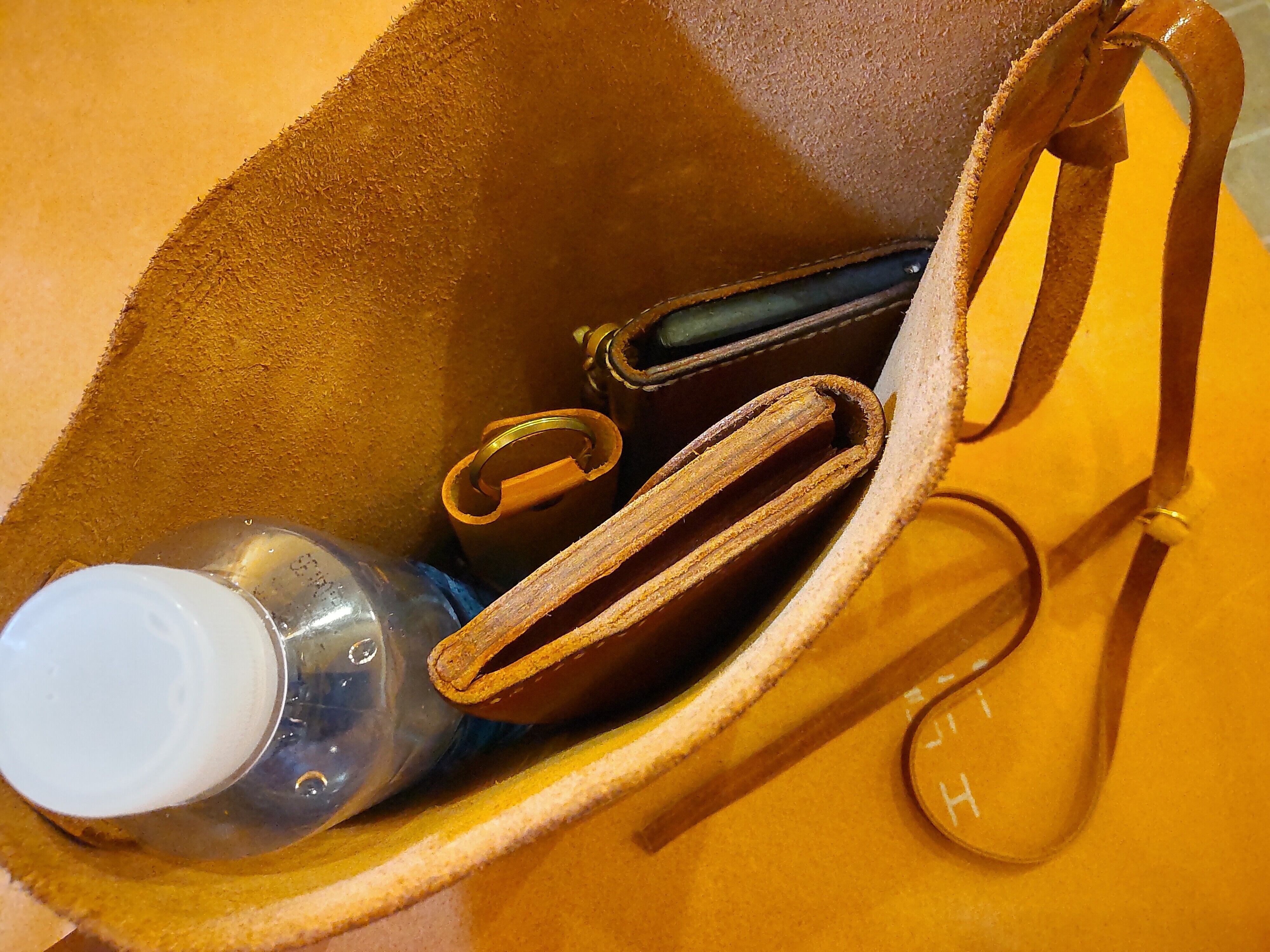 ペットボトルが入るのにスマートなバックです。男女問わず年齢問わずなシンプンなデザイン♡
